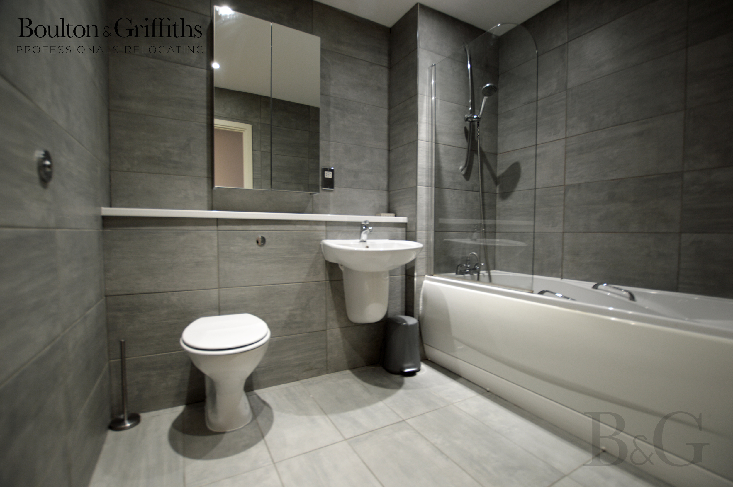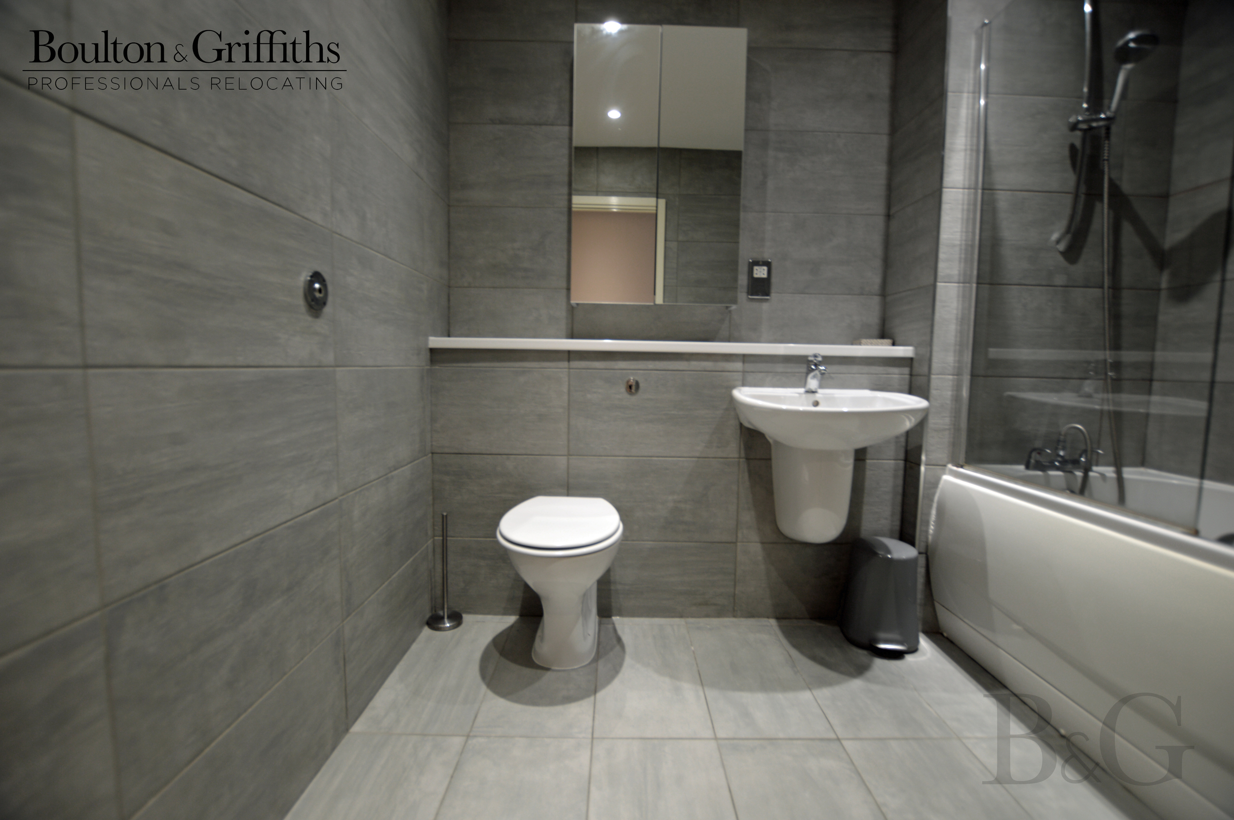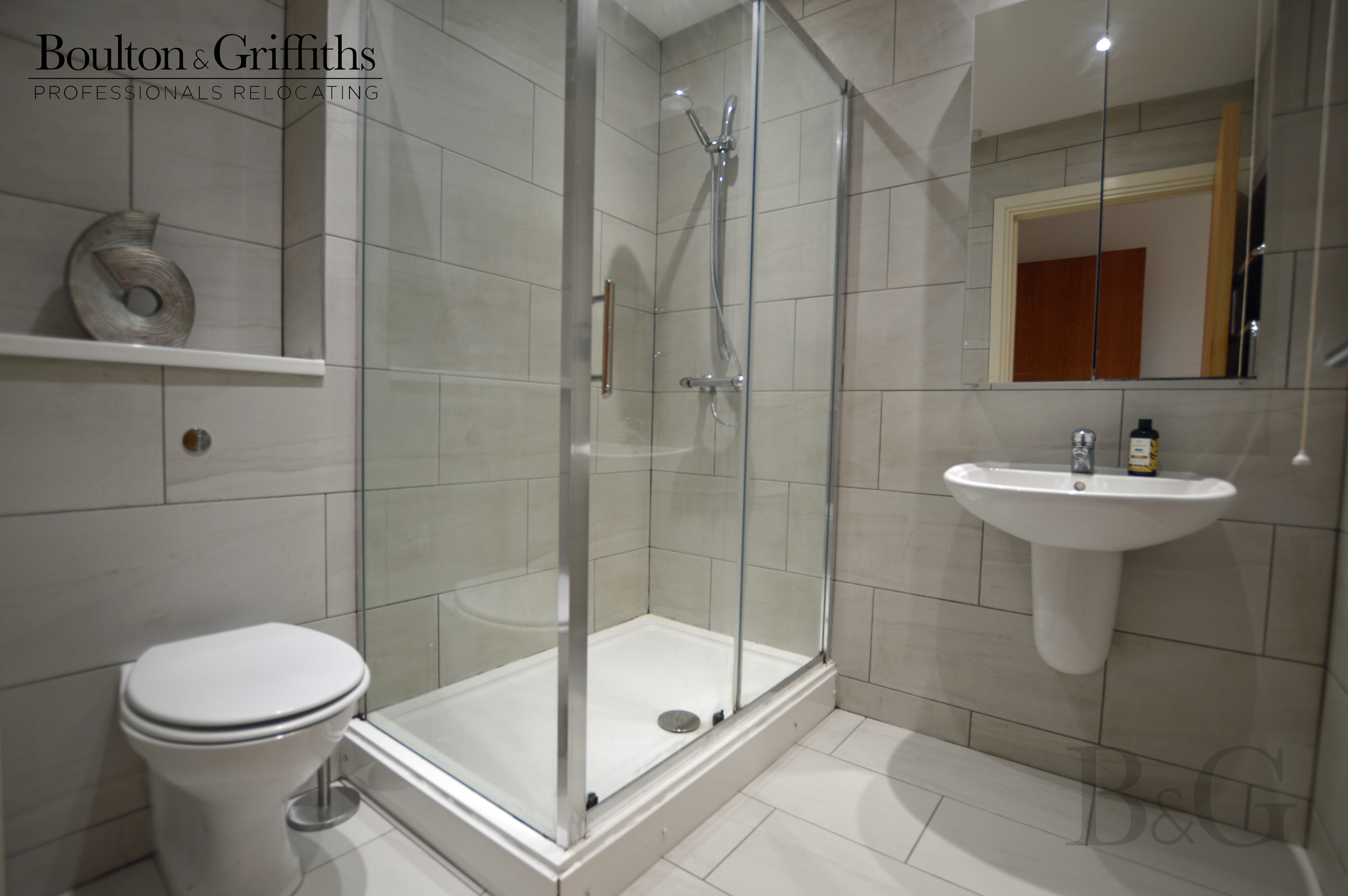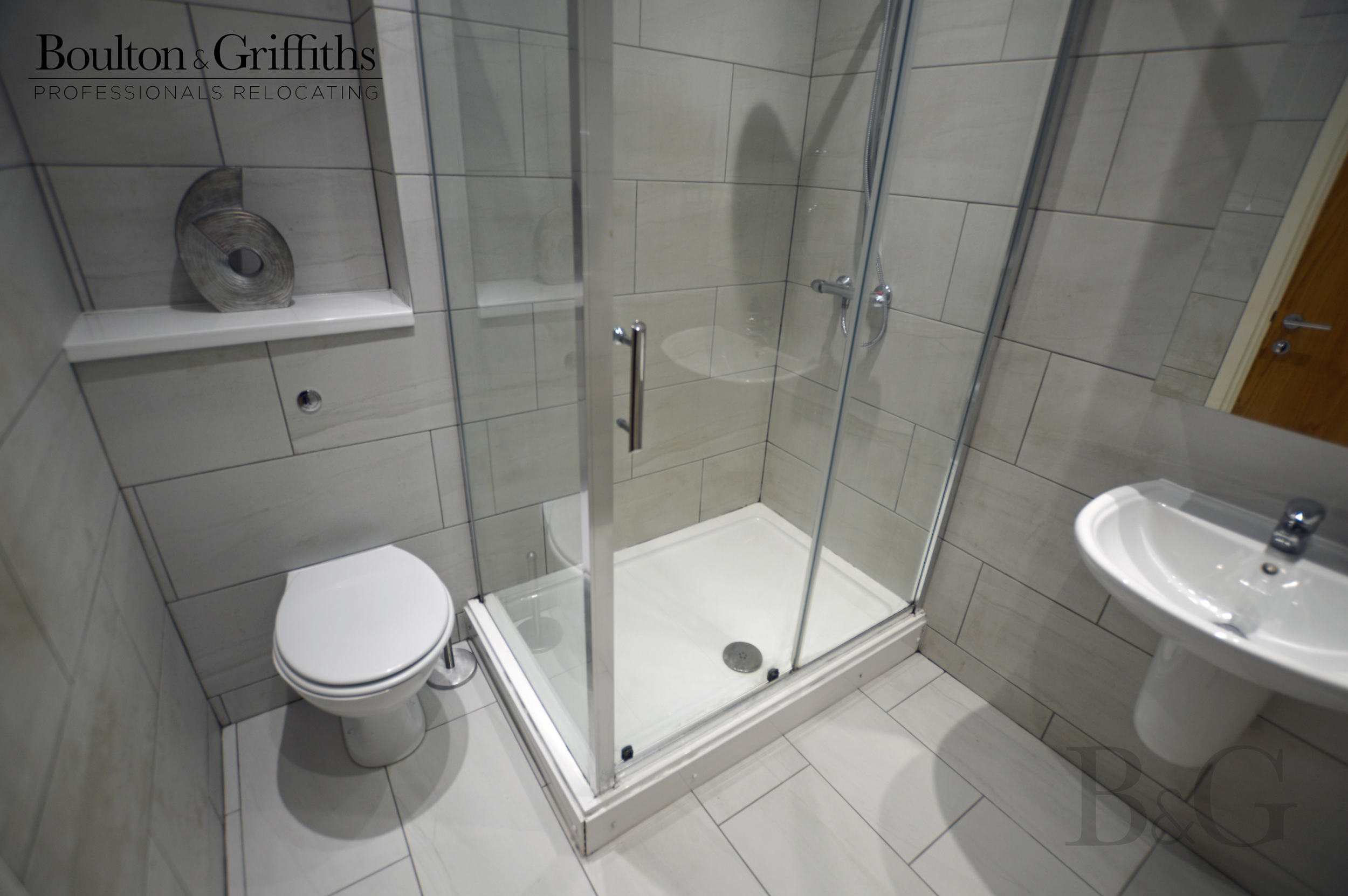 Modern tiled en-suite bathroom