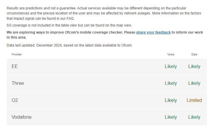 Information obtained rom ofcom.org.uk checker